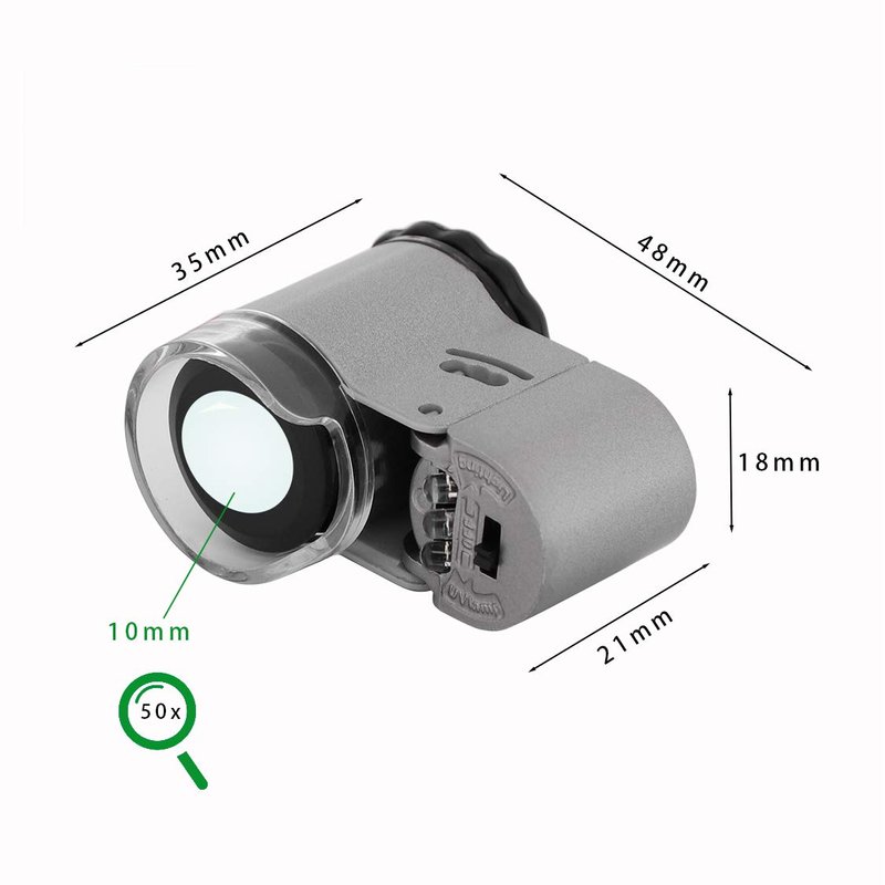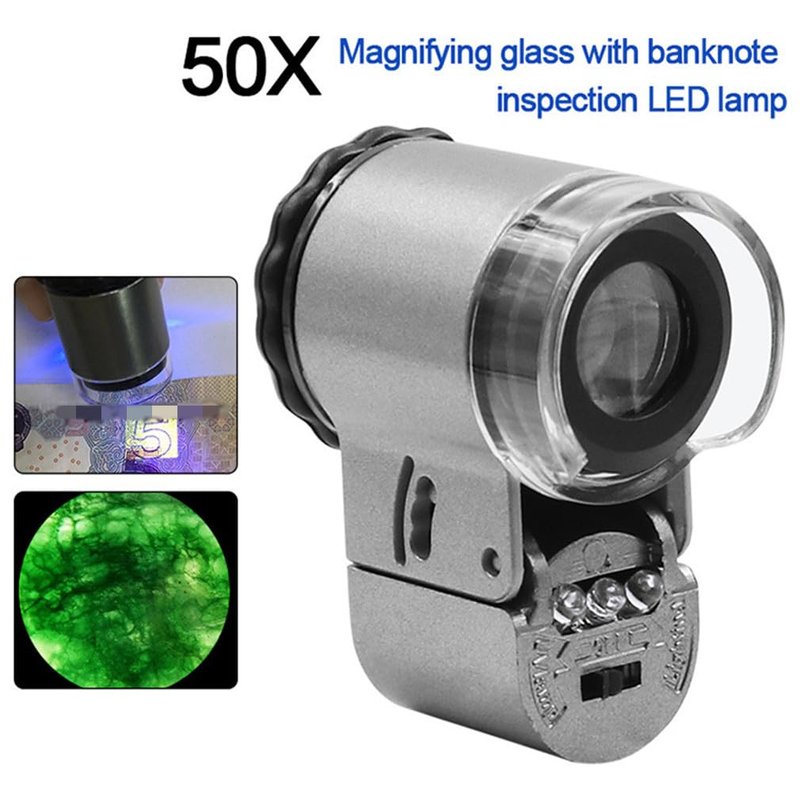 50X Pocket Jewelry Loupe Mini Jewelry Magnifier with UV LED Light Portable Eye Loupe Magnifier Coin Magnifying Glass Microscope Handheld Eye Glass for Jewelry Diamond Stamps Coin Collection