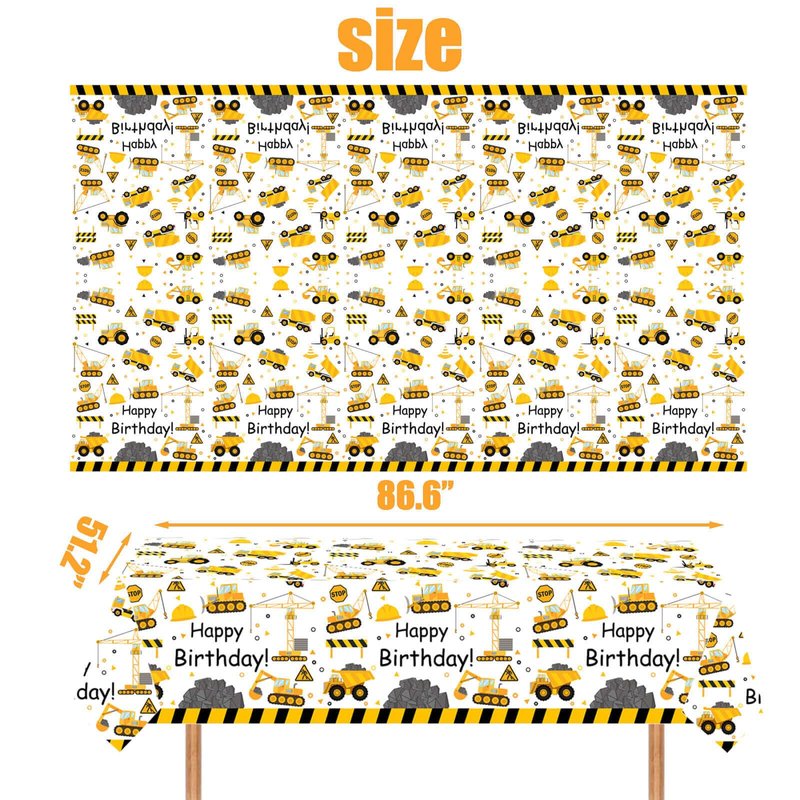 - Package Contents: 1pc 86.8" x 51.2" construction table cloth, 10pcs 7 inch paper plates, 10pcs 9 inch paper plates, 20pcs 6.5inch napkins, 10pcs 6.3inch forks. You don't need to spend extra time to choose, so you will spend more time with your party