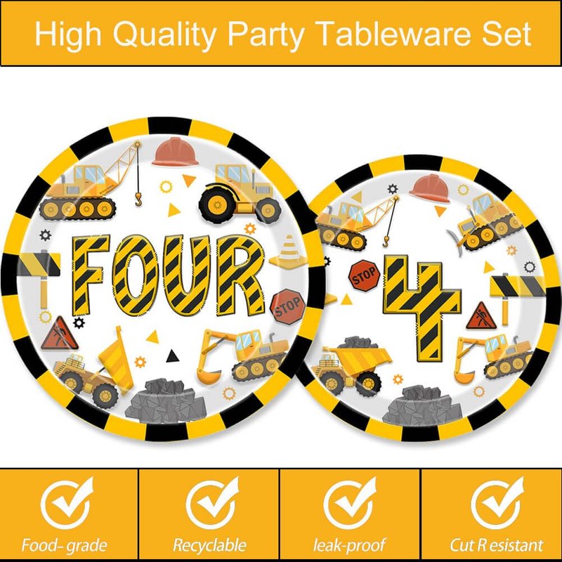 - High-Quality Material: We chose stronger plates and softer napkins than others. Construction birthday party plates and napkins are made of high-quality paper and are safe for both children and adults