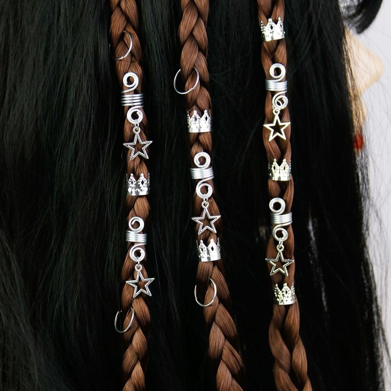 2 Pieces 5M Dreadlock Braids 50PCS Star Decor DIY Hair Ring Accessories Beads Hair Braid Rings Clips Dread Locks Hair Braiding Wig accessories decoration