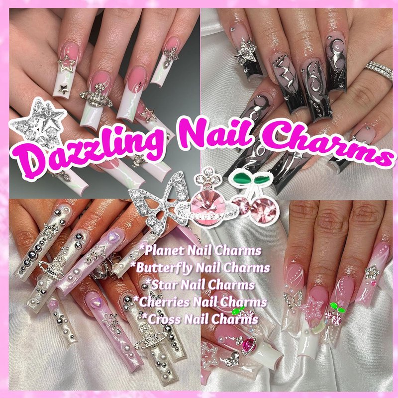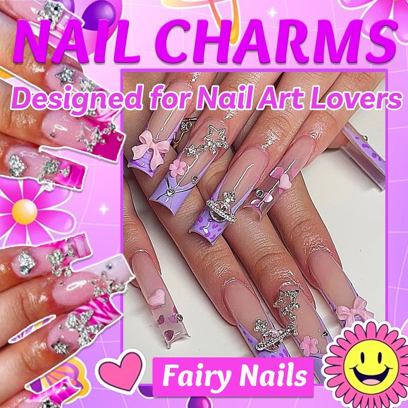 - Get Creative: 4 Pieces * Each Nail Charms Style With the Pink & Silver Nail Charms Set, the possibilities are endless. Whether you're a seasoned nail artist or just starting, these kawaii nail charms will inspire you to get creative and have fun with your nail art.