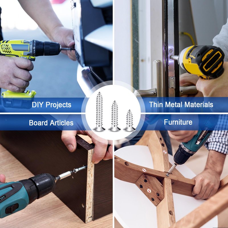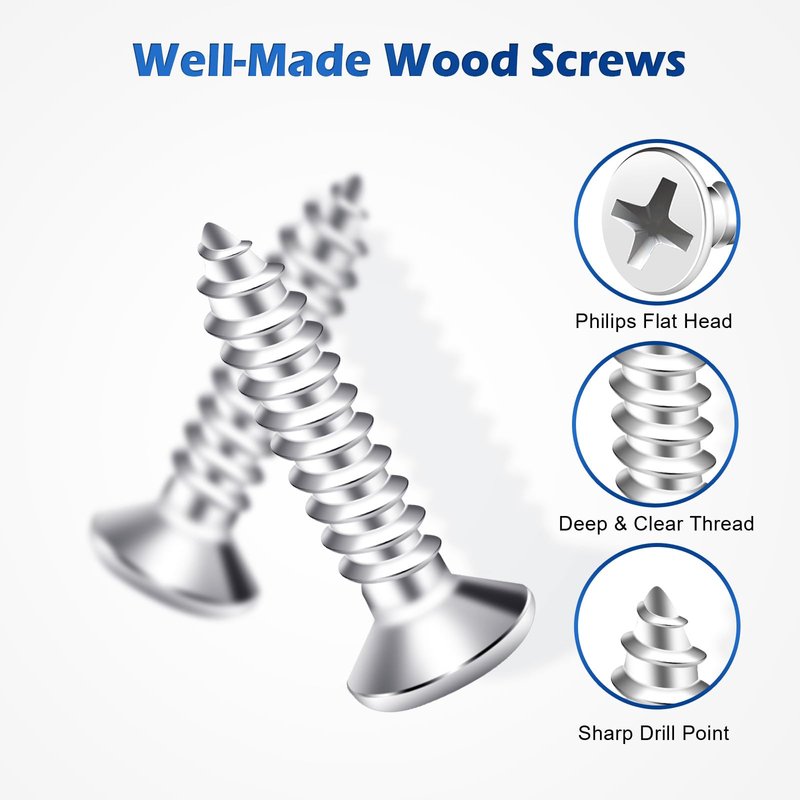 - Durable Wood Screws Kit: All self-tapping screws are made of high-quality 304 stainless steel with a corrosion-resistant finish, ensuring long-lasting performance even in harsh environments. High strength property ensures they will not bend or deform easily