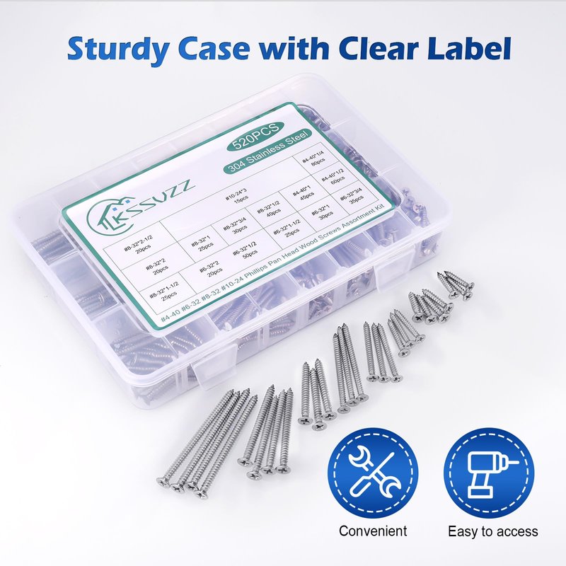 - Easy Identification: The storage case is labeled with the sizes, types and quantities of screws, making it easy to find the right one for your project without having to sort through a jumbled pile. The chart can greatly improve work efficiency for repair or other DIY