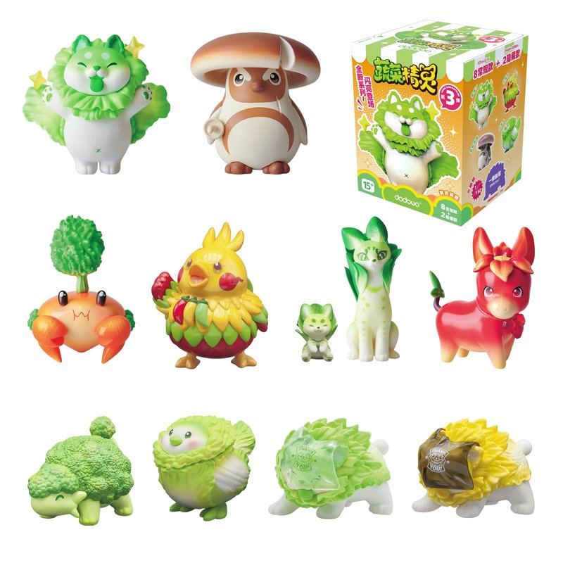 - 【Product Introduction】This series has 8 regular designs, 1 secret edition and 1 super secret edition. Character list: Incoming Vegetable, Mushroom Goose, Broccoli Ankylosaurus, Cabbage Bird, Cole-Cat, Pomegranate Donkey, Carrot Crab, LIttle Spicy Chicken