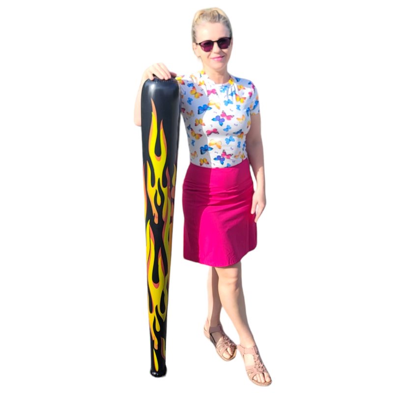- Overall, the 54" Jumbo Flame Baseball Bat is a fun and playful item that adds a touch of whimsy to your sports activities. Whether you are using it for role-playing, costume parties, or simply as a unique decoration, this jumbo bat is sure to catch the eye of anyone who sees it.