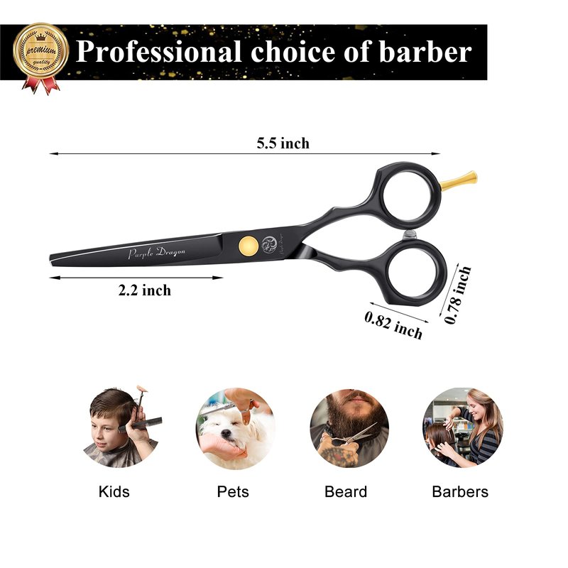 - CUT HAIR IN COMFORT: The premium scissors were designed for professional barber, this means you can shear a long time and never experience fatigue. which is perfect for barber or pet groomer