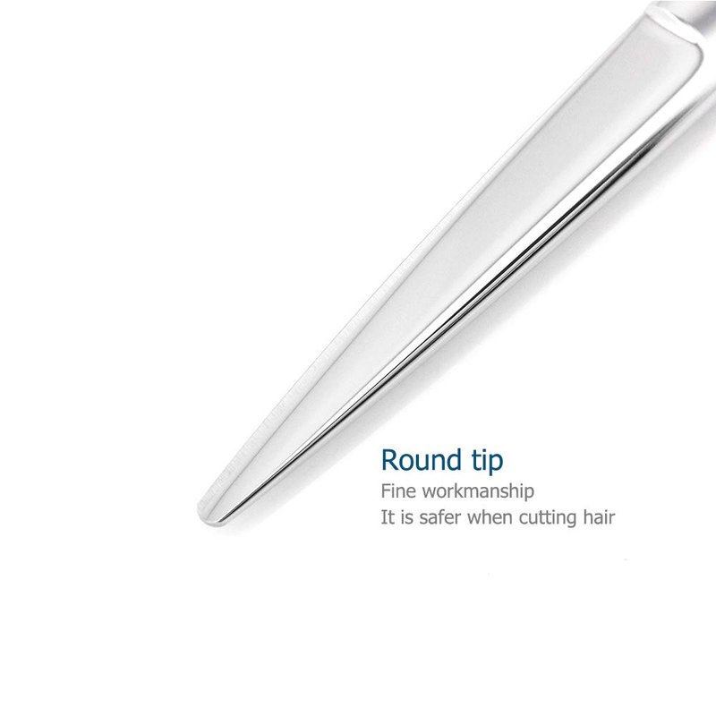 - Material: 440C is internationally recognized as one of the high-end hair scissors material with the perfect combination of high hardness and high toughness.440C hair scissors is very sharp and has excellent edge sharpness retention. Tips:The hardness of scissors is not the harder the better.The greater the hardness of the scissors,the lower the toughness.The blade of the scissors is very thin.If the toughness is small,the cutting edge collapses easily.