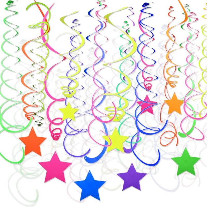- 【GREAT VALUE 】 Package Include: 56pcs neon Hanging Swirls(28pcs Star garland+ 28pcs Ceilings)