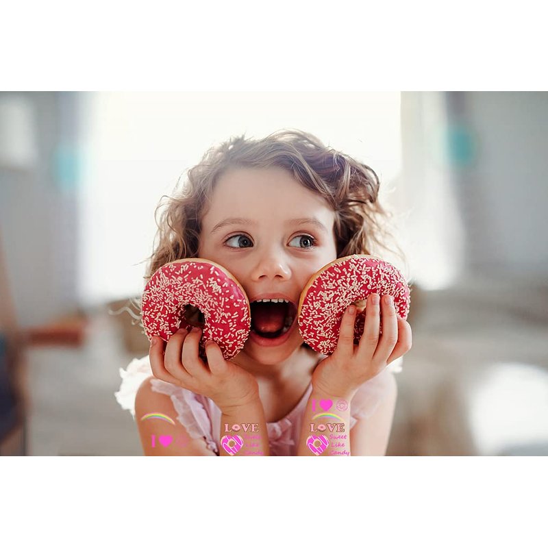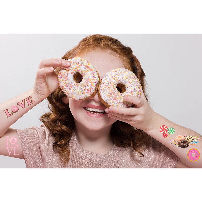 - Package Including - 560pcs of Donut themed temporary tattoos with over 50 designs(donut, ice cream, candy and so on).