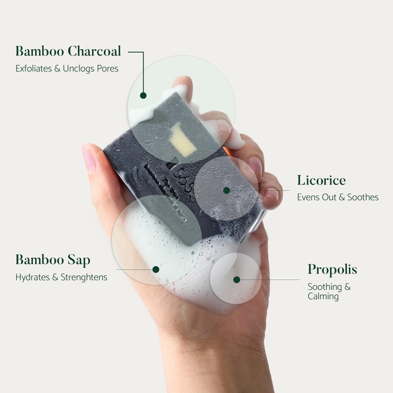 The Bamboo Charcoal Gentle Bar Soap combines the deep-pore purifying properties of Bamboo Charcoal with a gentle formula to provide a non-stripping cleanse. Enjoy a smoother, more radiant skin tone, as it removes dirt, oil, and impurities while evening out and revitalizing damaged skin. Silky Smooth Skin Delicately eliminate dead skin cells and clear congested pores, unveiling a soft and velvety complexion. Illuminate Uneven Skin Tone Gently diminish dark spots and hyperpigmentation, enhancing skin’s radiance without causing dryness. Intensive Hydration Carefully selected naturally-derived ingredients deliver essential hydration, supporting a healthy and supple skin barrier. All Skin Types Formulated for all skin types, our Gentle Soap Bar nourishes and revitalizes, promoting refreshed and rejuvenated skin.
