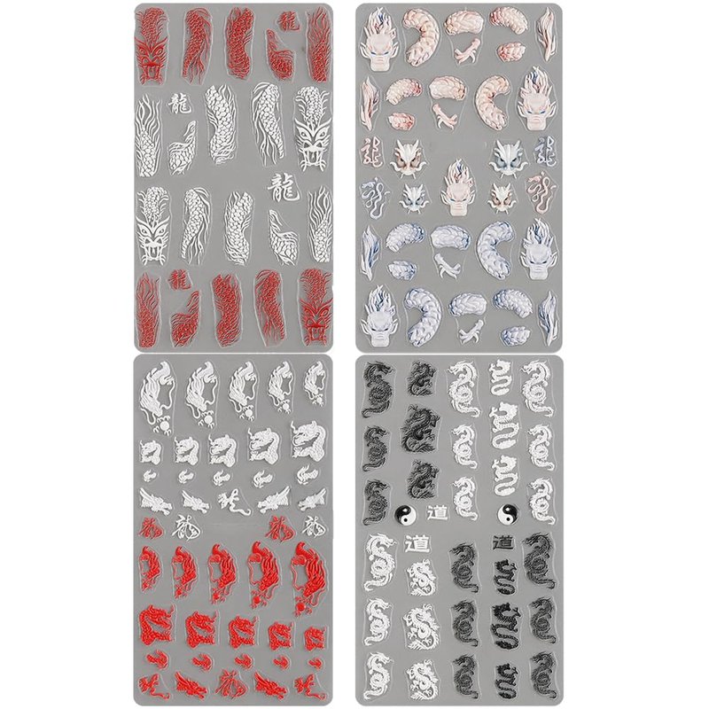 - √【Dragon Nail Stickers for Nail Art】This dragon nail set includes 4 sheets different 5D dragon nail stickers, with various dragon patterns to provide you with more choices for the Year of the Dragon nail design.