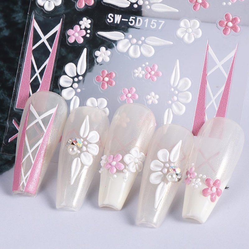 5D flower nail stickers are the perfect nail accessories for nail designs.