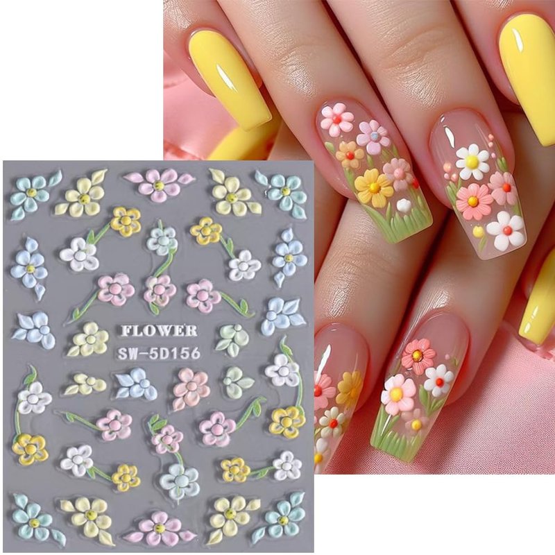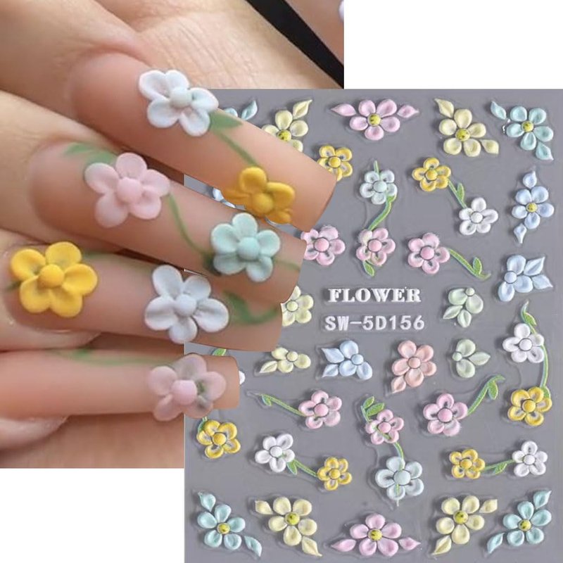 - 【Small Flower Nail Art Stickers】5D embossed small flower nail art stickers have obvious relief texture effect, which makes the nail effect more realistic than ordinary nail stickers, perfect for creating fashion floral nail art effects.