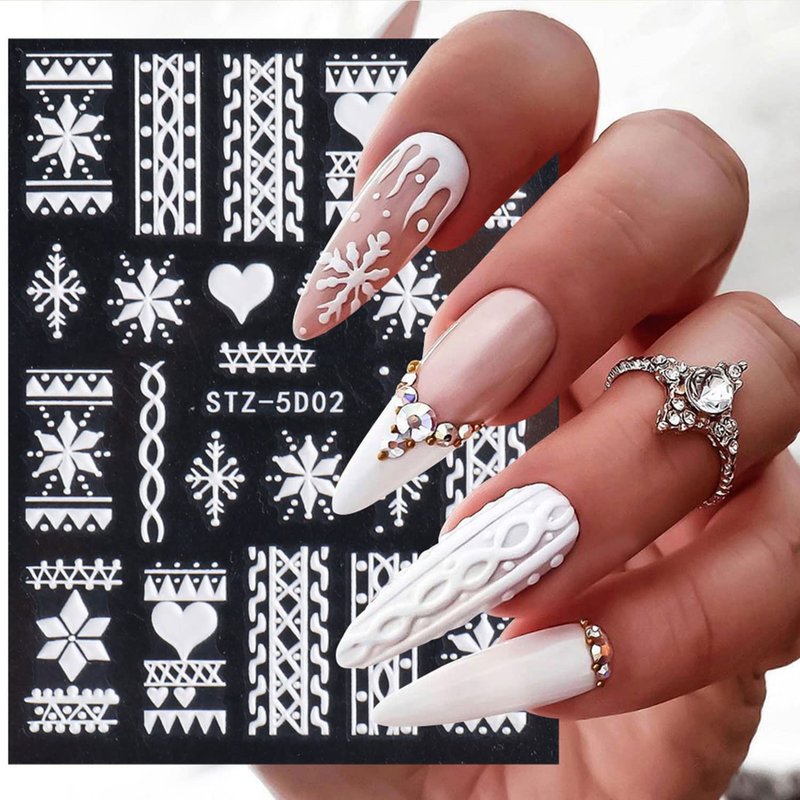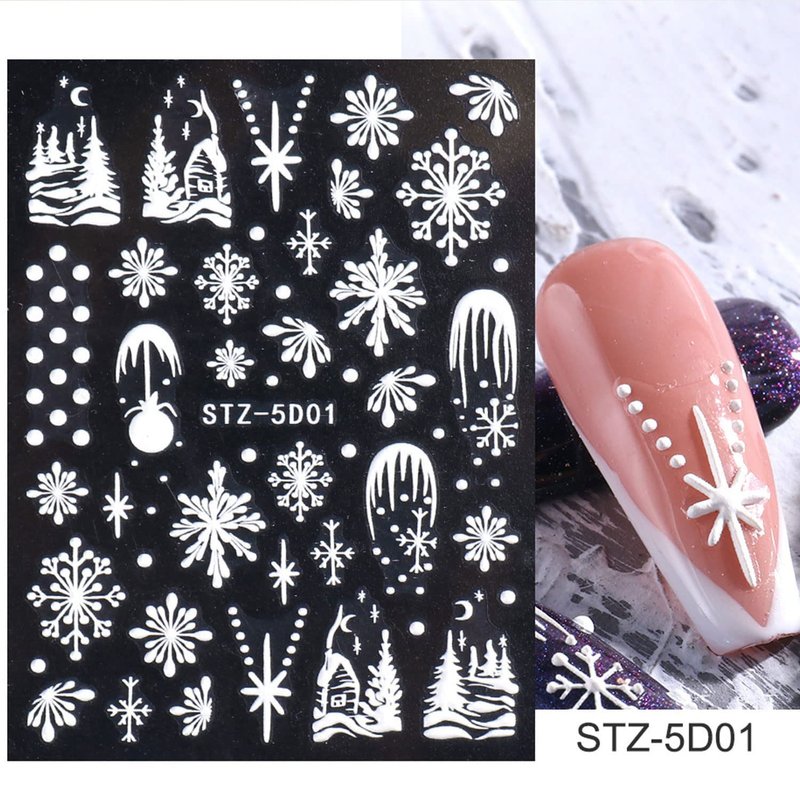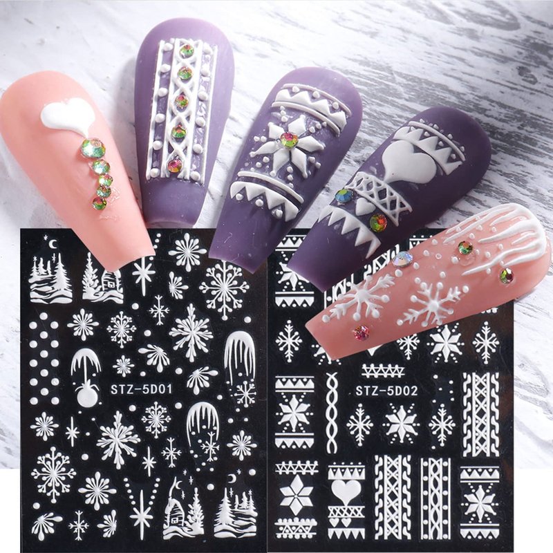 - ❄️☃️2024 New Design: The package comes with 3sheets 5D Self-adhesive slider Christmas white snow and flower nail art stickers relief Design Nail Decals. Each pattern has a unique flower design, attractive and creative.
