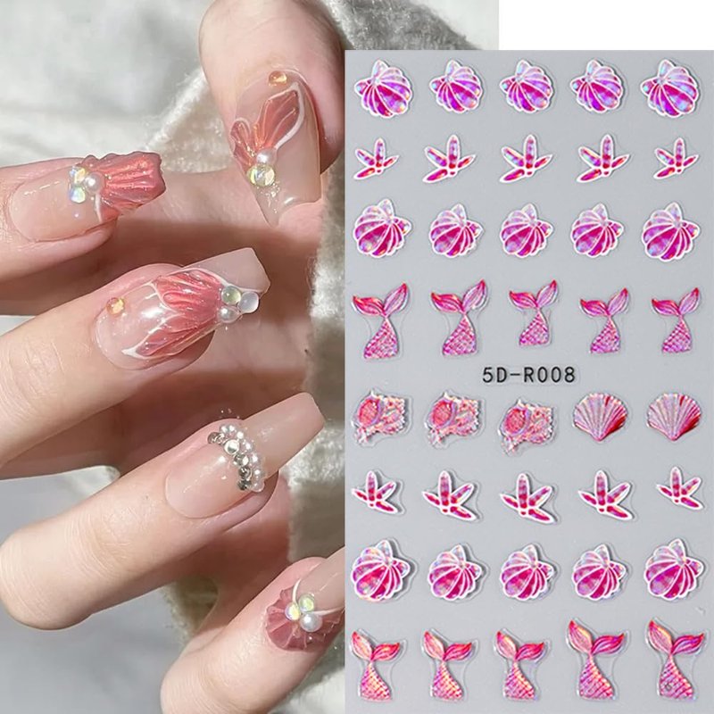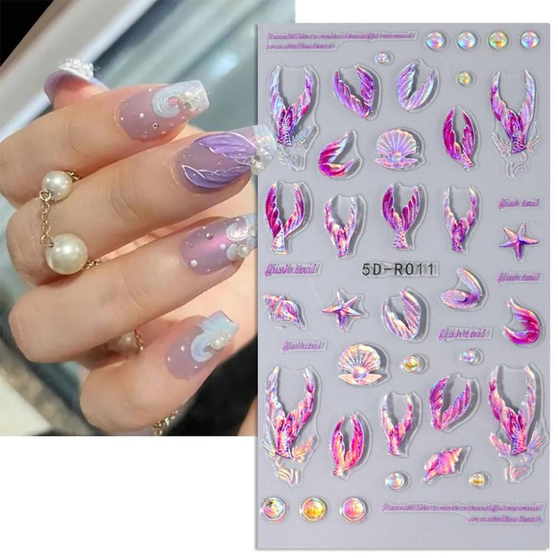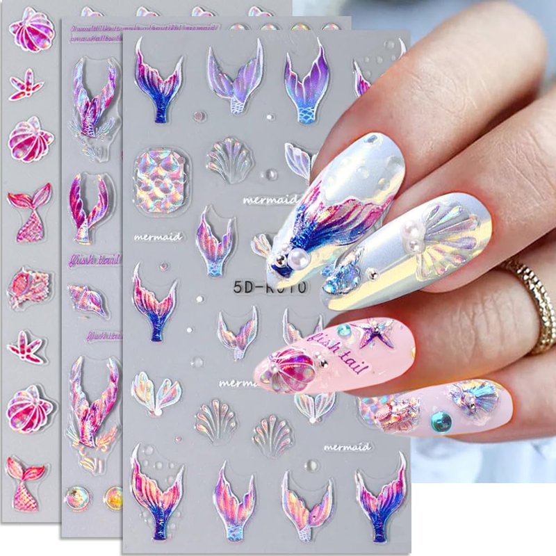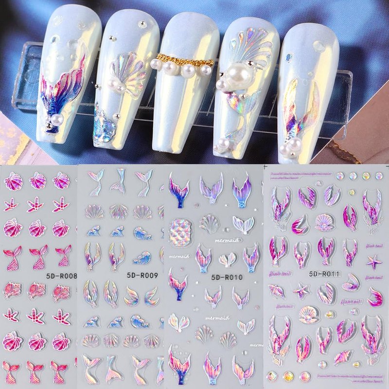 - 5D Summer Nail Stickers: You will get 4 sheets of 5D Mermaid nail stickers. Has a wealth of patterns, such as Mermaid, Jellyfish, Starfish and a variety of 5D Ocean patterns.