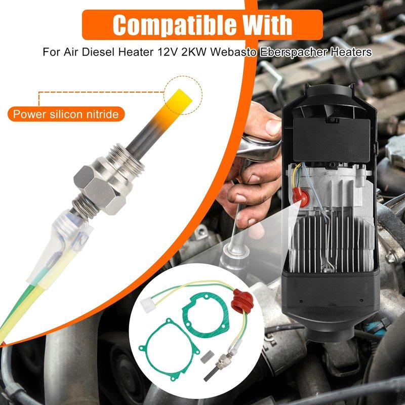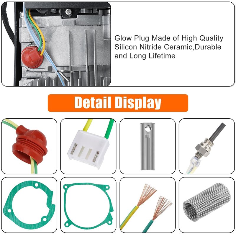 - 【Premium Material】Crafted from high-quality silicon nitride ceramic, plastic, and metal, the Parking Heater glow plug kit boasts exceptional thermal shock resistance and high-temperature strength. Moreover, the design features compact size, lightweight, will not take up too much space, can be easily carried anywhere for use.
