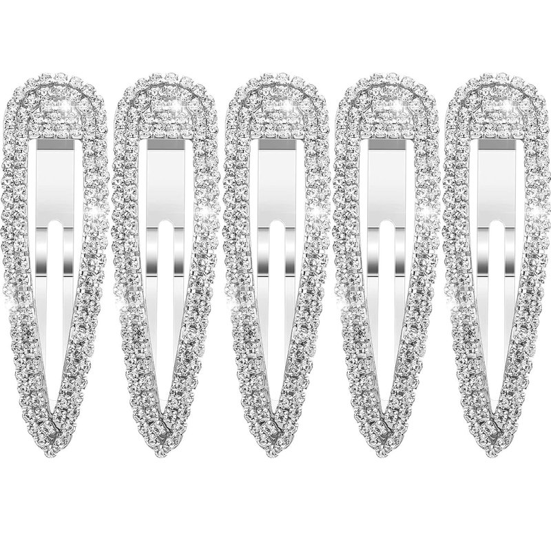 5Pcs Rhinestone Snap Hair Clips, Water Drop Crystal Snap Hair Barrettes, Glitter Shining Metal Snap Hair Clips, Glittering Hairpins Headwear Hair Accessories for Girls Women (Type E)