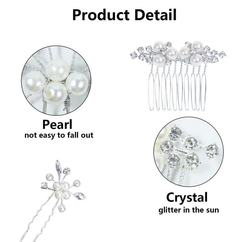 - 【Quality Material】These bridal hair pins are made of high quality alloy, copper wires, pearl and rhinestone. They are delicately made by hand, well plated and polished, the surface is smooth and bright, looking shiny and not easy to break and fade.