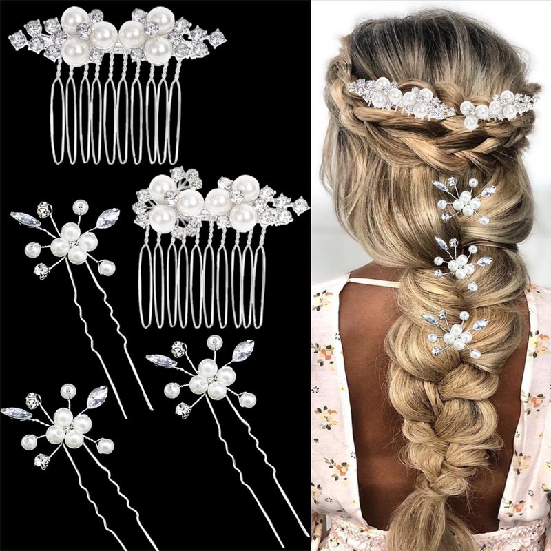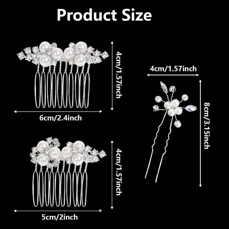 - 【What You Will Get】You will receive 2 pieces of wedding hair comb and 3 pieces of rhinestone and pearl hair pins. The dimensions of the hair comb are 2.4 x 1.57inches and 2 x 1.57inches. The size of hair pin is 3.15 x 1.57inches.