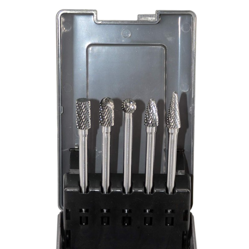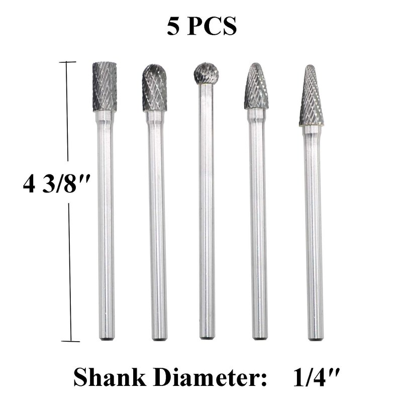 5pcs Tungsten Carbide Burrs Set with 1/4''Shank Double Cut Extended Long Solid Power Tools Carbide Rotary Files Bits for Die Grinder Metal Wood Carving Engraving Polishing Drilling Grinding Milling