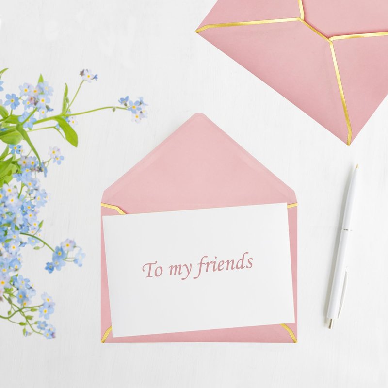 - [50 Pack Pink Envelopes]: You will get 50 PACK envelopes for 5x7 cards with gold border. The V flap and gold border design make the greeting card envelopes look classy, beautiful and fancy look. Not only suitable for wedding invitations, graduation invitations, baby shower invitations, party invitations, etc. But also great envelopes for greeting cards, thank you cards, business cards, etc.