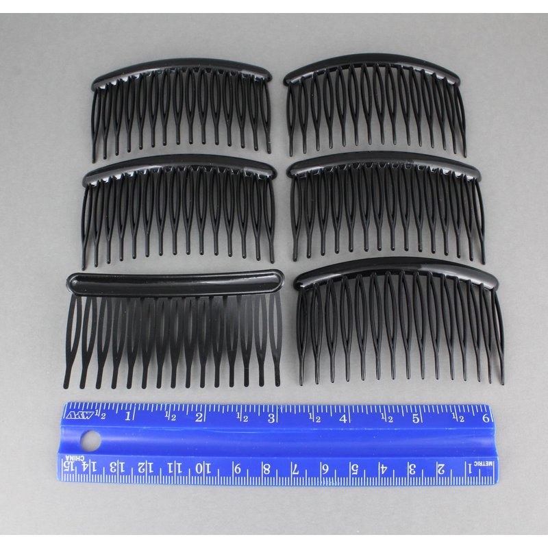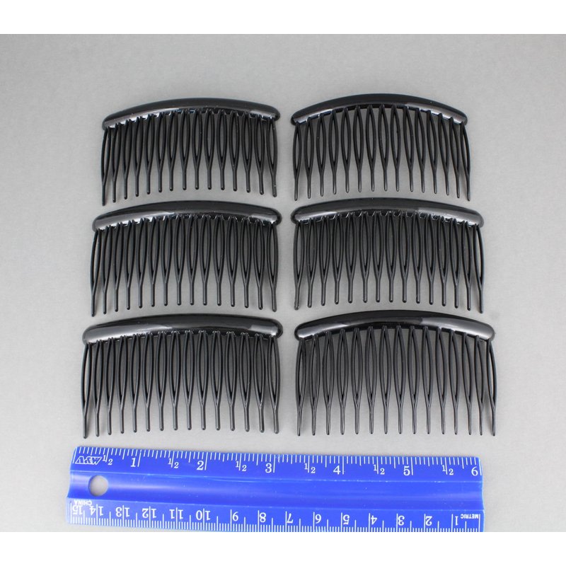 6 Black Hair Comb set pack plastic teeth side clip 3.25 inches wide side comb