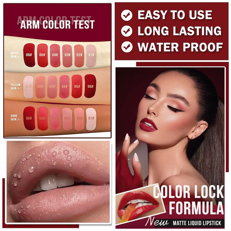 - 【Highly Pigmented & Vibrant colors】With our color lock formula, These longwear highly-pigmented liquid matte lipsticks deliver intense and richly pigmented shades. Choose from our six daily pop-colors to make a bold statement and add a pop of color to your makeup look.