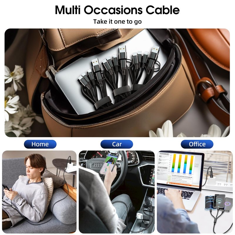 - 【Convenient and Portable】Ideal length 4Ft/1.2M is optimal to use in home, office, car, traveling & more. Nylon braided 6-in-1 Charger Cable is very easy to fold and place in your handbag, laptop bag, pocket etc. The multi connectors allow you to enjoy videos, games, chat. Charging multi device at the same time, without the clutter of multiple cables.