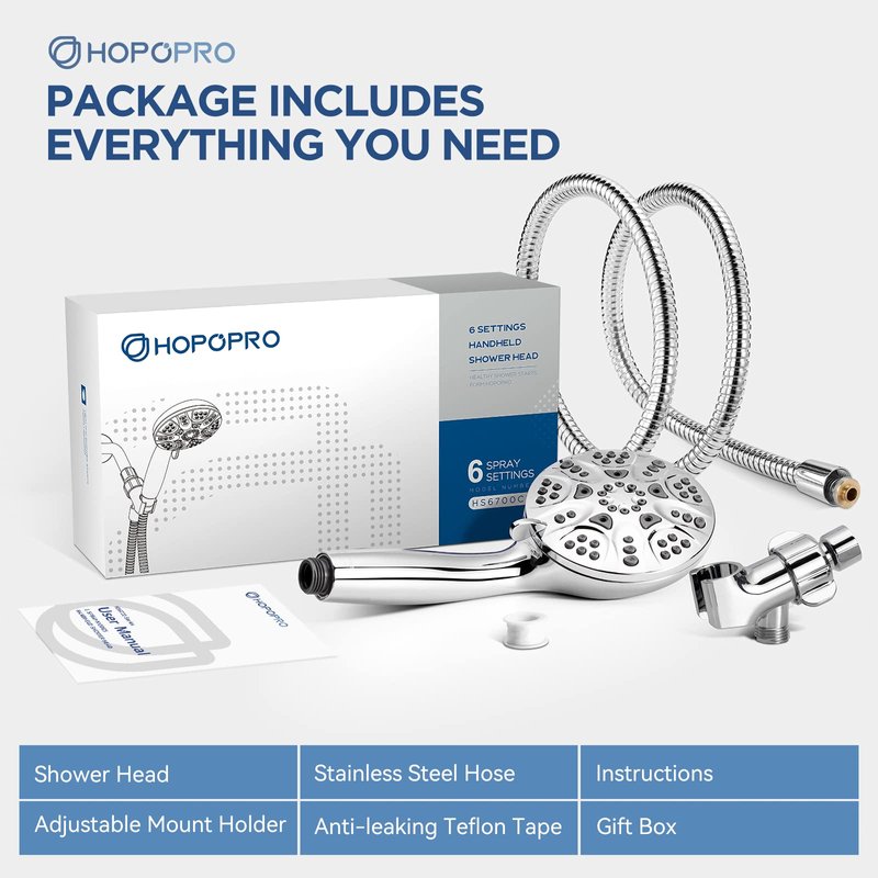 6-Mode High Pressure Handheld Shower Head Set, Consumer Reports Recommended HOPOPRO High Flow Hand Held Showerhead with 59 Inch Hose Bracket Teflon Tape Rubber Washers