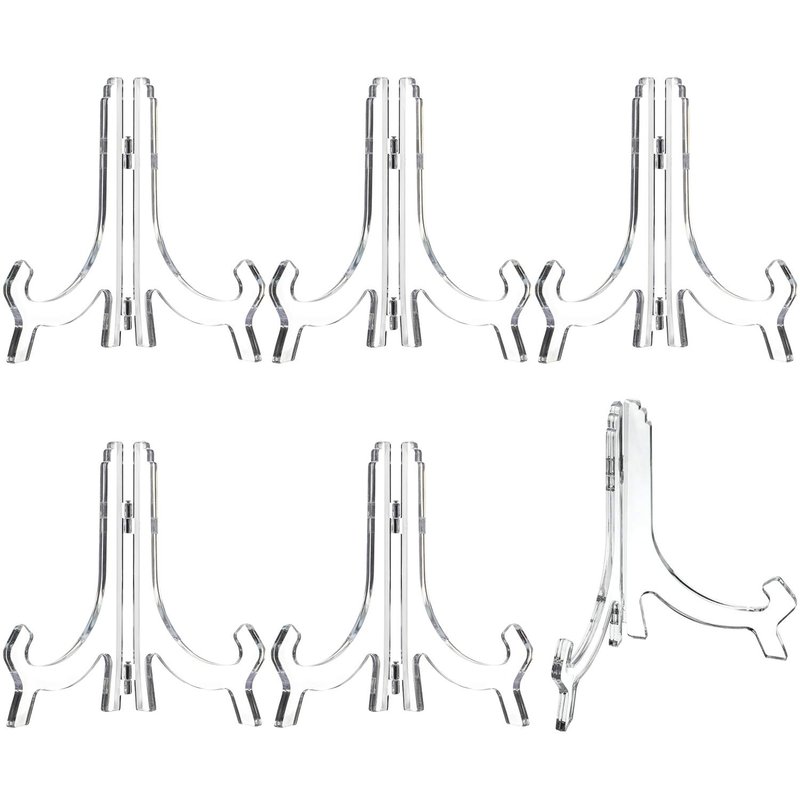 6 Pack 7 Inch Acrylic Easel Stand, Display Stand, Plate Stands for Display, Photo Holder Picture Frame Book Stand (Clear)