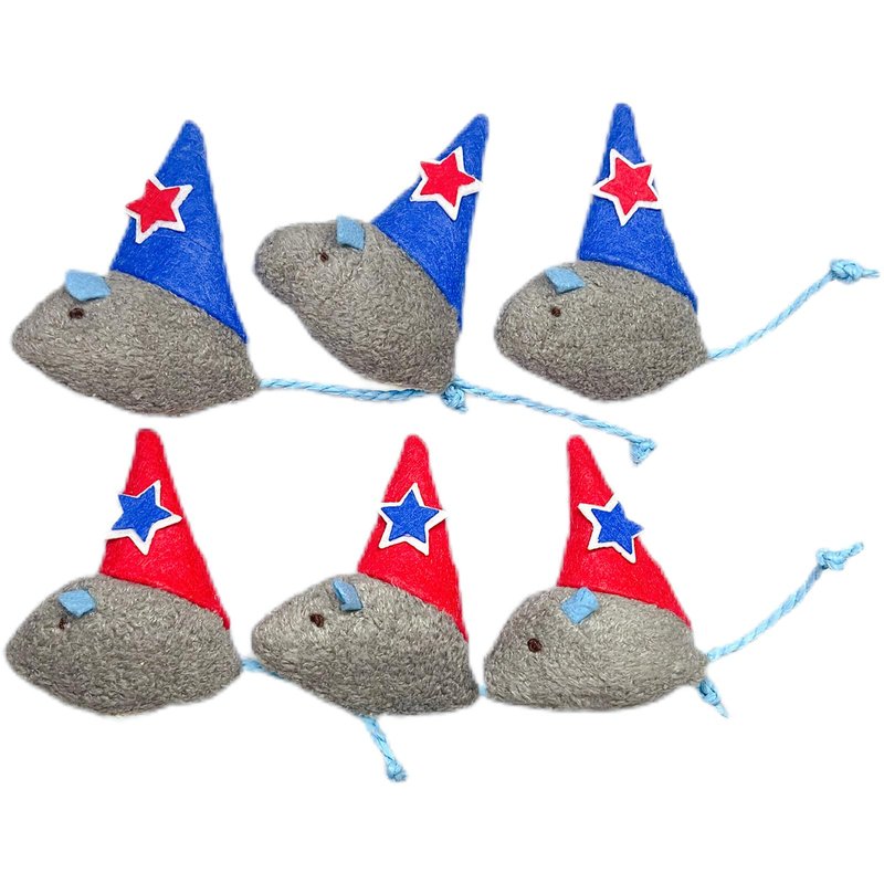 6-Pack Christmas Catnip Mouse Toy Set for Cats - Festive Red & Blue Star Hats, Perfect for Holiday Fun and Gifts for Abyssinian American Shorthair Bengal Birman British Shorthair Burmese Chartreux Cornish Rex Devon Rex Egyptian Mau Exotic Shorthair Himalayan Maine Coon Norwegian Forest Cat Oriental Shorthair Persian Ragdoll Russian Blue Scottish Fold Siamese Siberian Wholesale Cat Toys