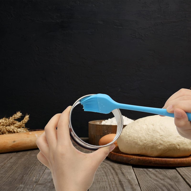 - English Muffin Rings Set: come with 6 pack 3.93 inch/8cm baking rings and blue silicone brush that you can make different baking food, and you can brush oil to the metal molds to avoid stick on the metal ring.