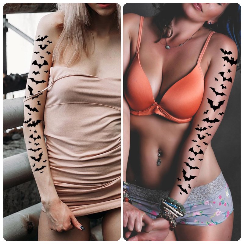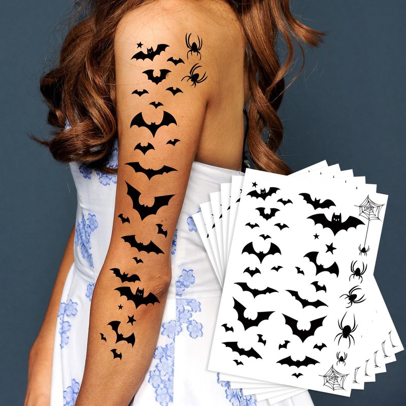 - HALLOWEEN-THEMED TATTOO SET: -- This 6-pack of Halloween temporary tattoo stickers features a variety of spooky designs including black bats, spiders, and spider webs. Perfect for adding a chilling touch to your Halloween costume or party.