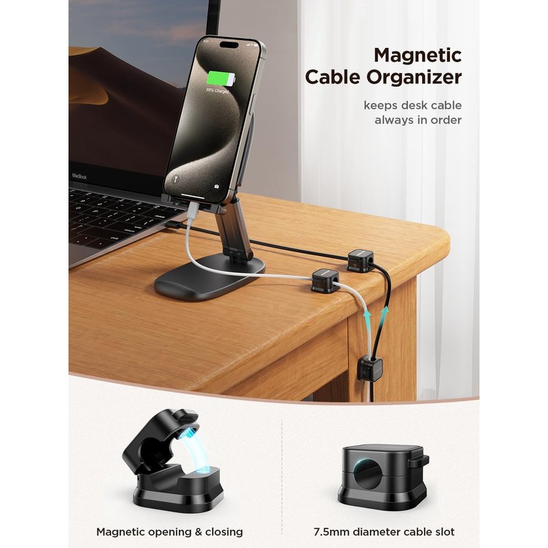 - 【Magnetic Clamp Design】The unique magnetic opening and closing cable clip design allows you to place and remove cables with only one hand. Unlike other cord holders on the market, Joyroom cable organizer uses a sophisticated 60° rotating shaft and magnetic locking cord design, helping you easily snatch a cord off or easily add a cord easily.