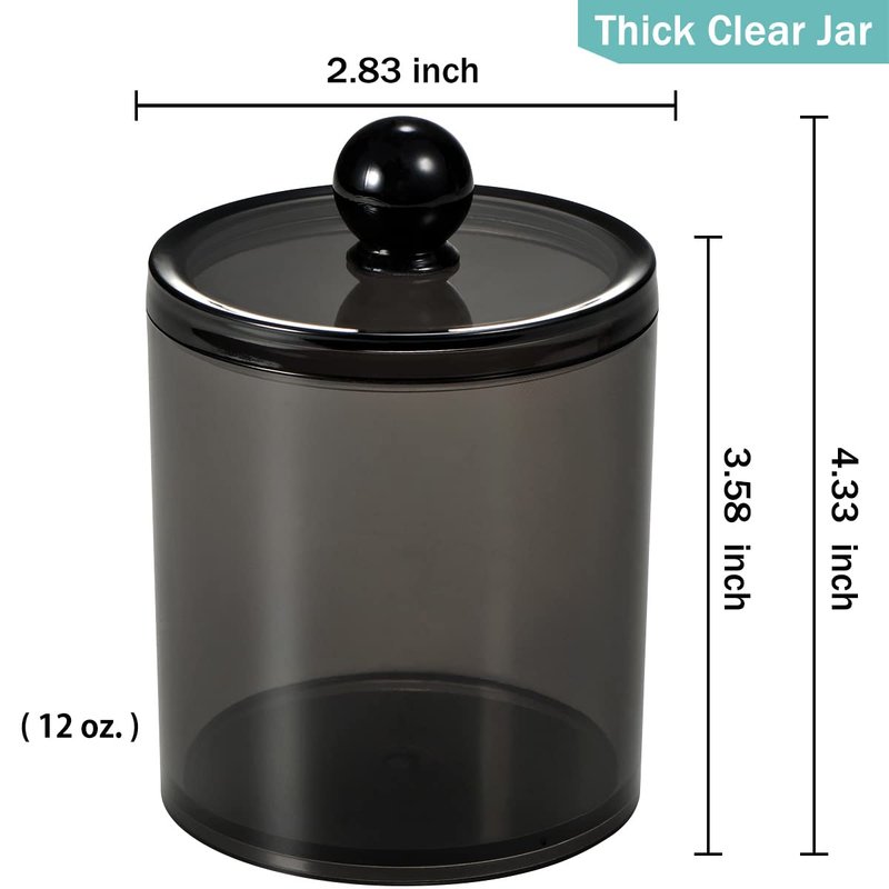 - ✅PERFECT SIZE ADN EASY TO USE- Perfectly sized for storing q-tips,cotton rounds or any miscellaneous bathroom things in the bathroom. Each apothecary jar has a removable acrylic lid and a wide mouth to make accessing bathroom necessities and accessories simple.Lid fits well,not too loose or too snug,easy to set the Q-Tips perfectly in the dispenser and easy to get them out
