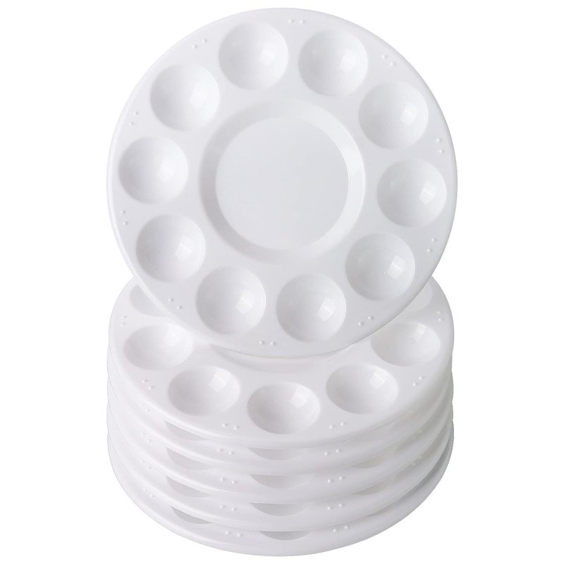 - The package contains 6 round paint tray palettes plastic. Size: diameter is 6.7 inches, well depth is 0.4 inches.