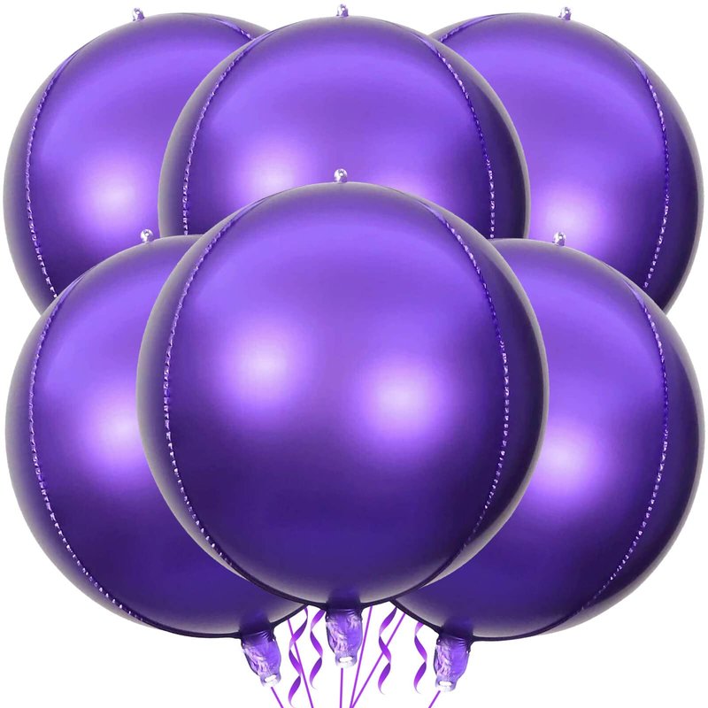 6 Pack Purple 22 Inch 4D Foil Balloons Big 360 Degree Round Sephere Mylar Balloons Mirror Finish Metallic Balloons for Wedding,Birthday,Bachelorette,Baby Shower Decorations Party Supplies