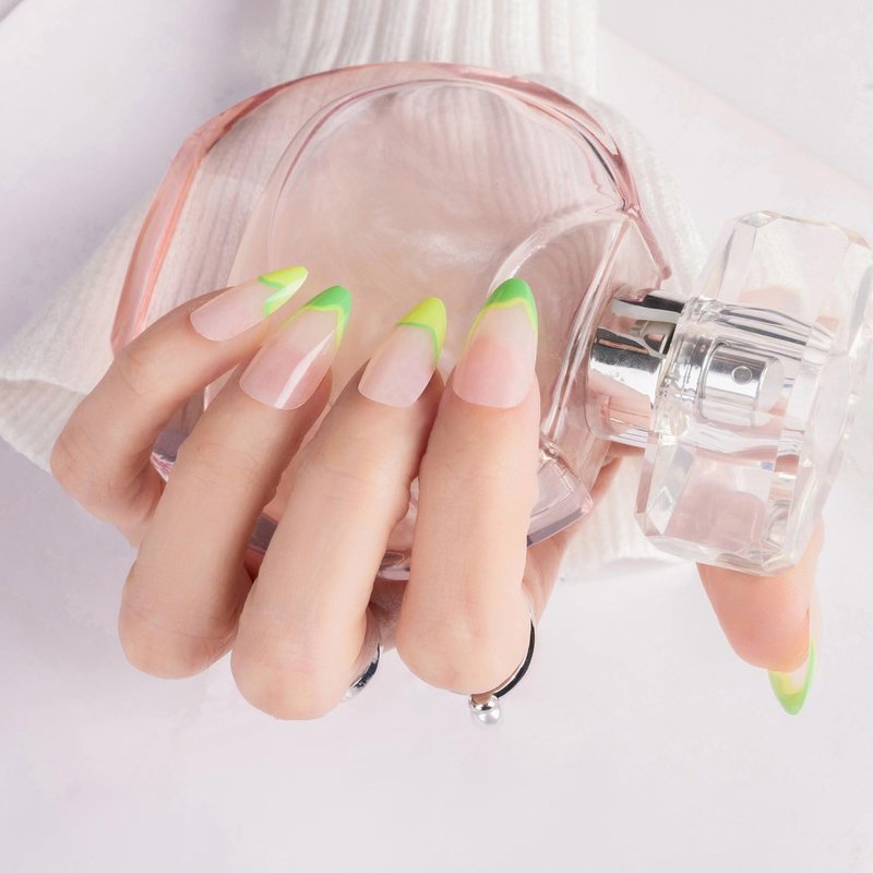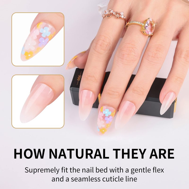 2. Select the right size nails from 24 pcs false nails , use jelly gel or liquid gel to smear the nail, and gently press for about 10-15 seconds to obtain a new beautiful glue nails almond.