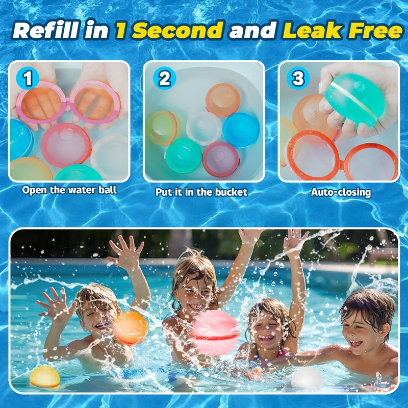 - Easy to fill and magnet closed: It only takes 1 second to fill, just open the magnetic water balloon and immerse it in the water to fill it up quickly, our silicone water balloon uses strong magnets for a good seal and won't leak