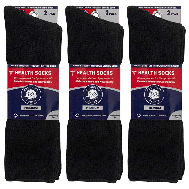 6 Pairs of Extra Wide Diabetic Socks, Mid/Over the Calf Medical Swollen Feet Socks (Black)