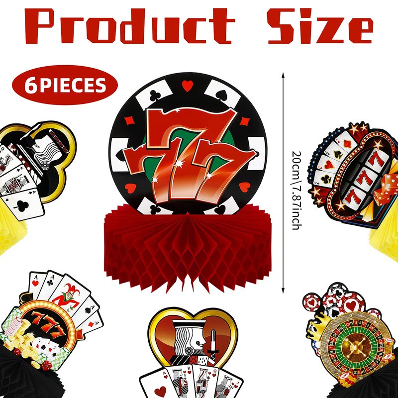 - What you get: package comes with 6 pieces of casino party honeycomb centerpieces in various styles with the proper size, suitable for your Vegas casino poker event, card game party night, and magic show supplies