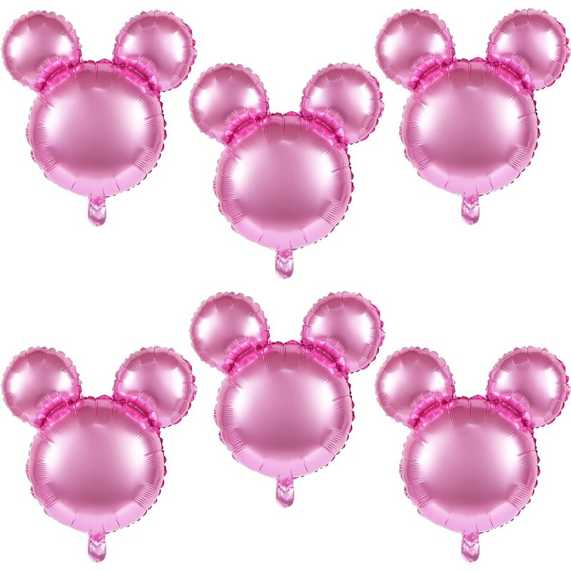 6 Pcs Mouse Head Balloons, 24'' Mouse Mylar Balloon Jumbo Mouse Head Aluminum Foil Balloons for Birthday Party Decorations Baby Shower Supplies Party Favors (Pink)