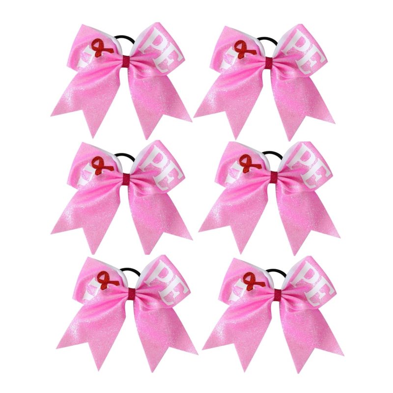 - Our new cheer bows features sequin pink ribbon patterns with cute letters , glitter colors make them easy to catch others' attention and show your attitude. As fashion matching items for breast cancer awareness party, celebration, work or school party, breast cancer awareness themed photo booth and other kinds of gatherings, also suitable for daily wear, worn with dresses, jeans and t-shirts.