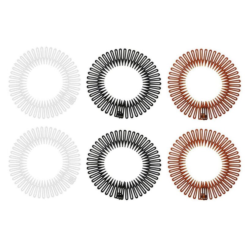 6 PCS Plastic Stretchy Circle Flexible Comb Teeth Headband Hair Clips Hoop Women's Fashion Hair Combs Hair Band Hair Accessories (Black+Brown+Transparent)