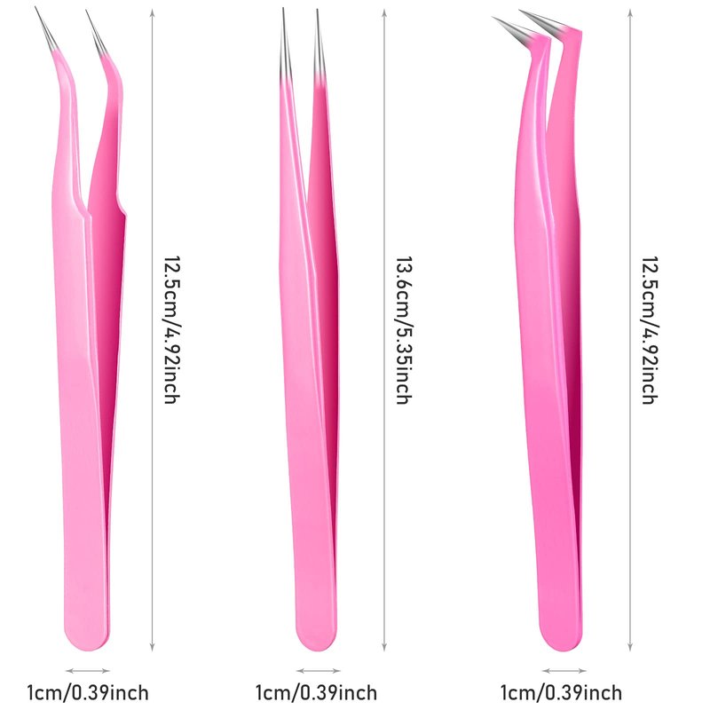 - Size details: the size of straight tip tweezers is 13.3 x 1 cm/ 5.24 x 0.39 inches, the size of curved tip tweezers is 12.2 x 1 cm/ 4.80 x 0.39 inches, and the size of volume tweezers is 12.5 x 1 cm/ 4.92 x 0.39 inches