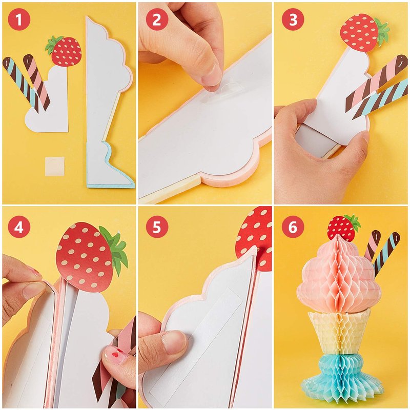 - Package content: you will get 6 pieces tissue ice cream honeycomb table centerpieces in 5 styles, novel combination can catch people's eyes easily, meet your decoration needs and match with diverse patterns of your party decoration