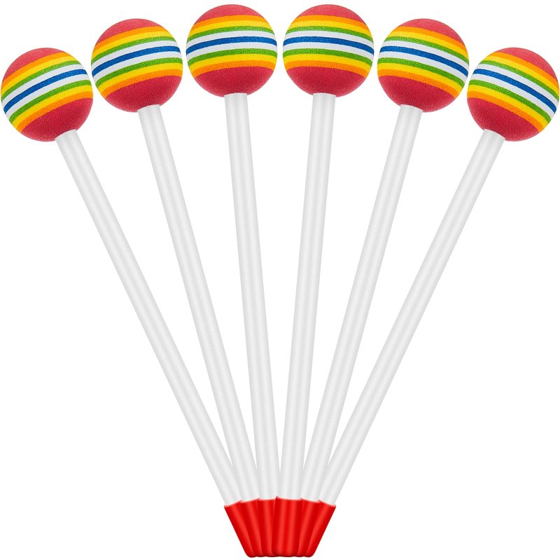 6 Pieces Lollipop Felt Drum Stick Soft Lollipop Drum Timpani Mallets Foam Head Percussion Sticks Rainbow Plastic Drumsticks for Kids Hand Percussion Toy for Adults Musical Instrument Accessories