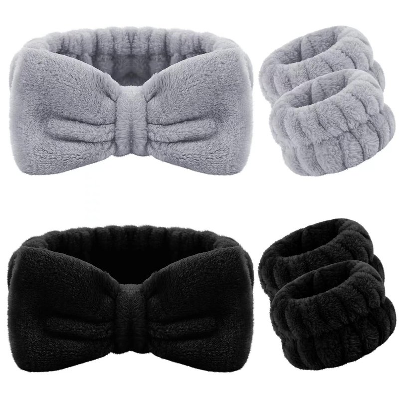 ๐Package 6 pieces, includes 2 pieces of microfiber bow hair bands and 4 pieces of wrist bands, so you always have a fresh wash hairband & wrist bands. It is recommended to wash by hand or machine wash.