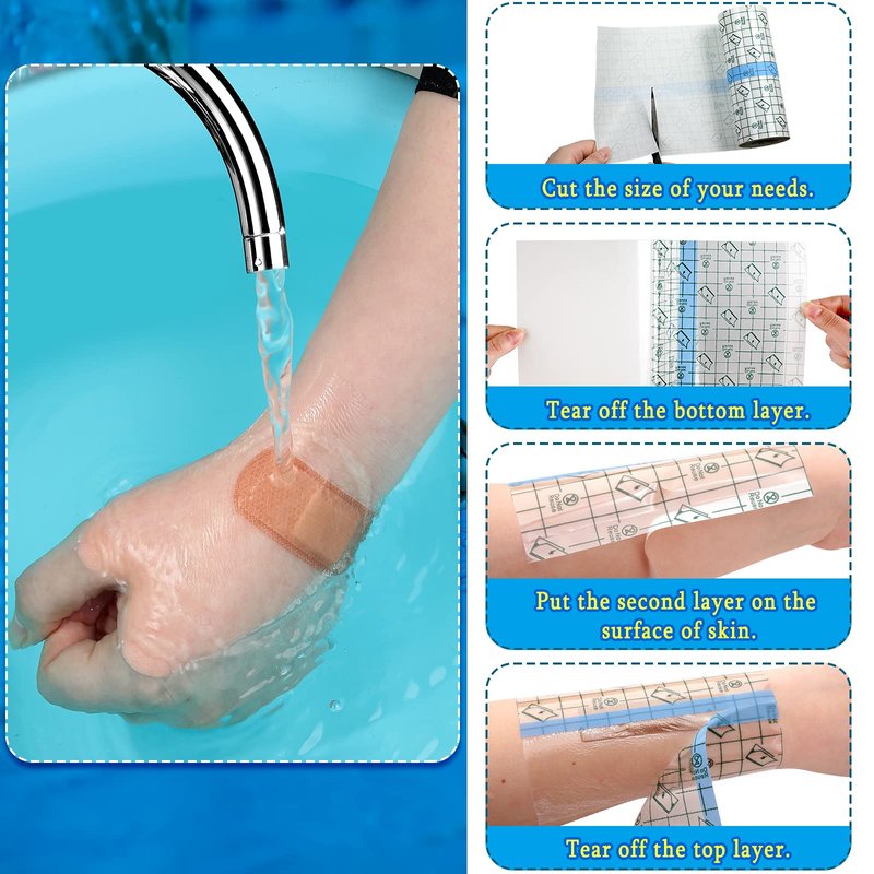 - Waterproof and moisture-proof dressing tapes: with our adhesive bandages dressing tapes, you could shower or swim freely as usual; They can help your skin to breathe naturally, and excrete water, air and sweat, also reduce scabbing and risk of infection effectively