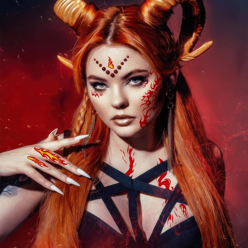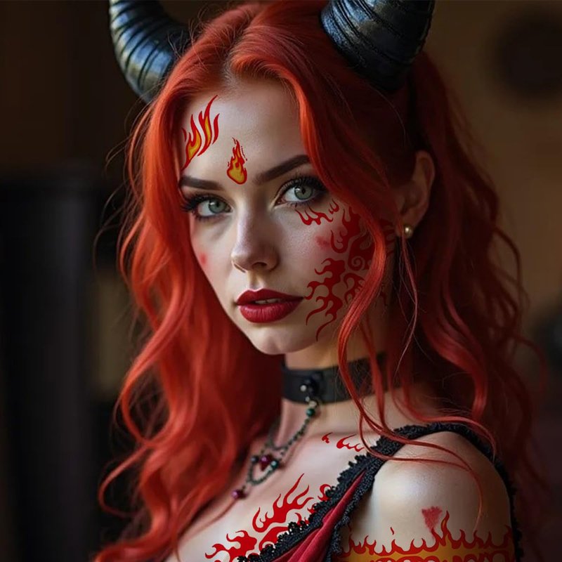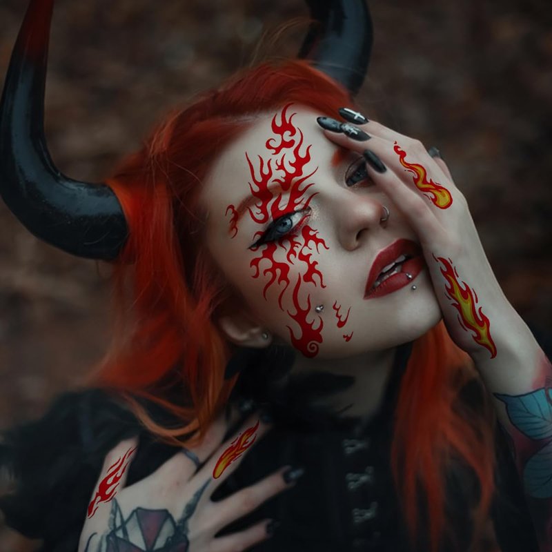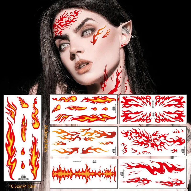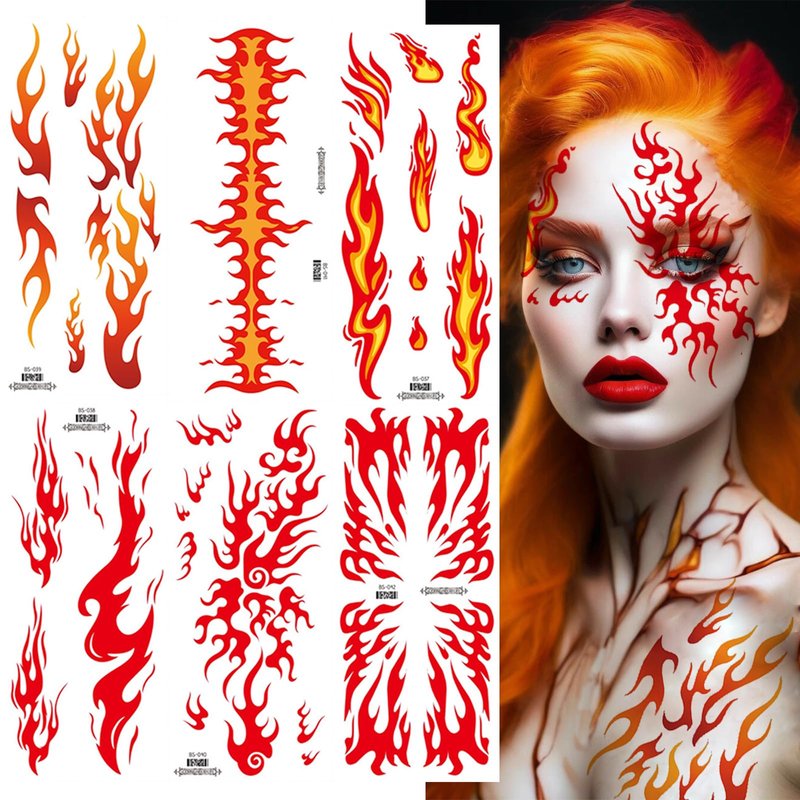 6 Sheets Flame Temporary Tattoo Stickers Realistic Waterproof Face Body Arm Makeup Decoration for Women Men Halloween Party Arm Collarbone Leg DIY Art Props (Red Orange)